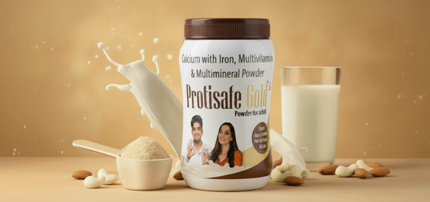 When it comes to the best protein powder, people often think only about muscles. But adults need more: strong bones, healthy blood, stamina, and immunity. That’s why Protisafe Gold Powder for Adults, from Agrosaf Pharmaceuticals, is more than just protein. It’s a balanced blend of protein, calcium, iron, multivitamins, and essential minerals – everything your body needs daily.