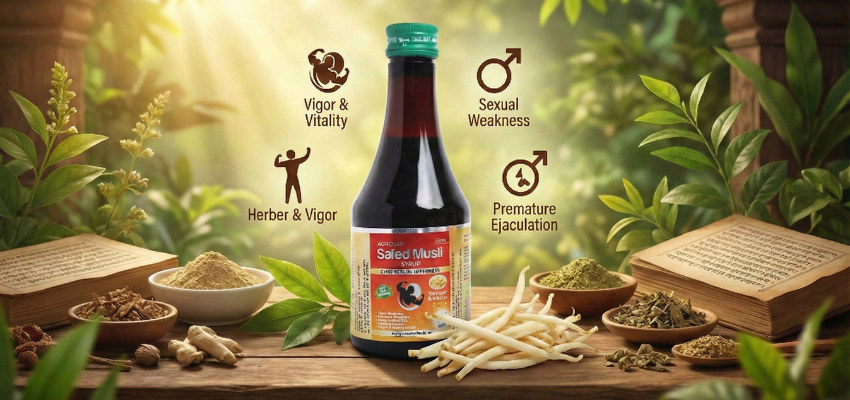 Agrosaf Safed Musli Syrup offers a safe, Ayurvedic and effective approach to improving stamina, sexual wellness, energy and reproductive strength.